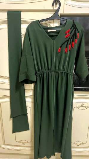 Вещь в идеальном состоянии ,надето было всего два раза, цвет хаки, длина мити размер 44 в идеально состояние не одна бусинка...
