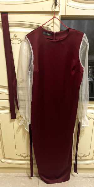 Платье бордовое с очень интересными рукавами они у платье прозрачные в комплекте идёт пояс на рукавах есть завязки платье...
